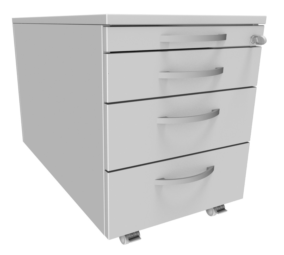 Die Container enthalten Zentralverschlüsse mit Auszugsperren, austauschbare Zylinderkerne und Softeinzug. Die eingesetzten Auszüge entsprechen der DIN EN 15338. Die Organisationsschubladen werden werkzeuglos mit den kugelgeführten Auszügen arretiert und können jederzeit auch ohne Werkzeug demontiert werden. Containerseiten, Sichtrückwände, Fronten und Unterböden werden aus 19 mm, Oberböden bei Rollcontainern aus 19 mm und bei Standcontainern aus 25 mm dicken Gütespan platten gefertigt.