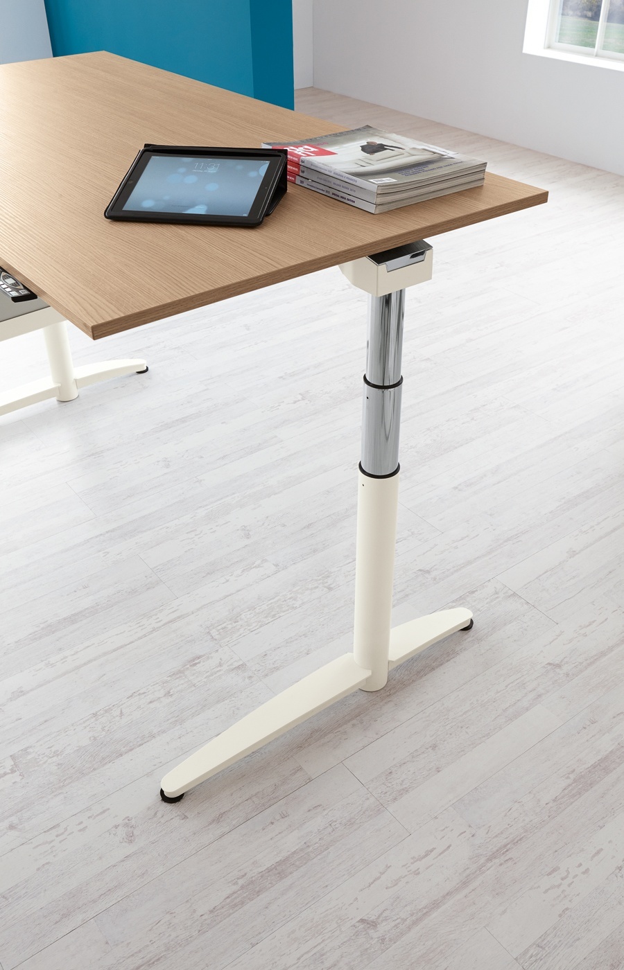 Ein voll ergonomischer Arbeitsplatz mit elektromotorisch höhenverstellbarem Tisch ermöglicht es, jederzeit ohne Aufwand zwischen sitzender und stehender Tätigkeit zu wechseln. Der Höhenunterschied für Ihre Fitness beträgt 500 mm oder 600 mm. Der Caldo von Palmberg hat in der Standardversion mit Einfachteleskop einen frei einstellbaren Bereich von 680 bis 1180 mm. Die Version 2 mit Doppelteleskop ermöglicht sogar einen Verstellbereich von 680 bis 1280 mm.