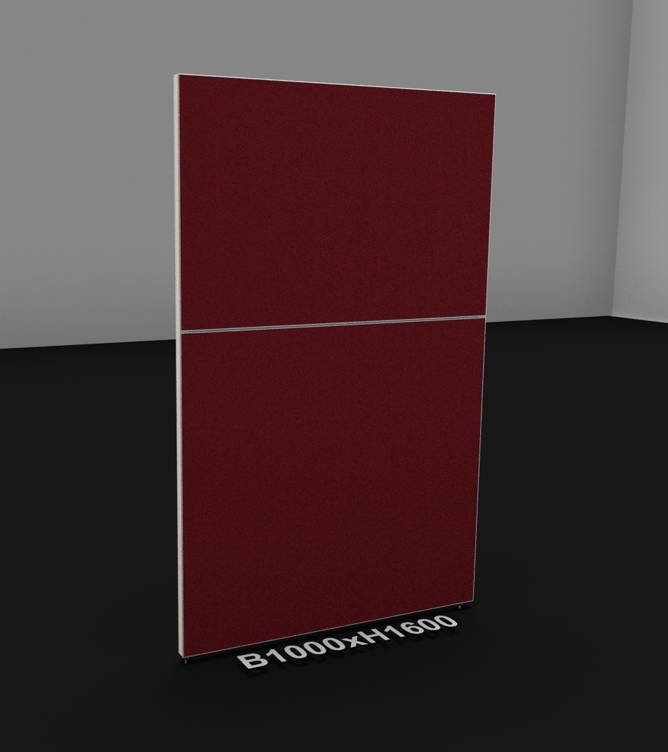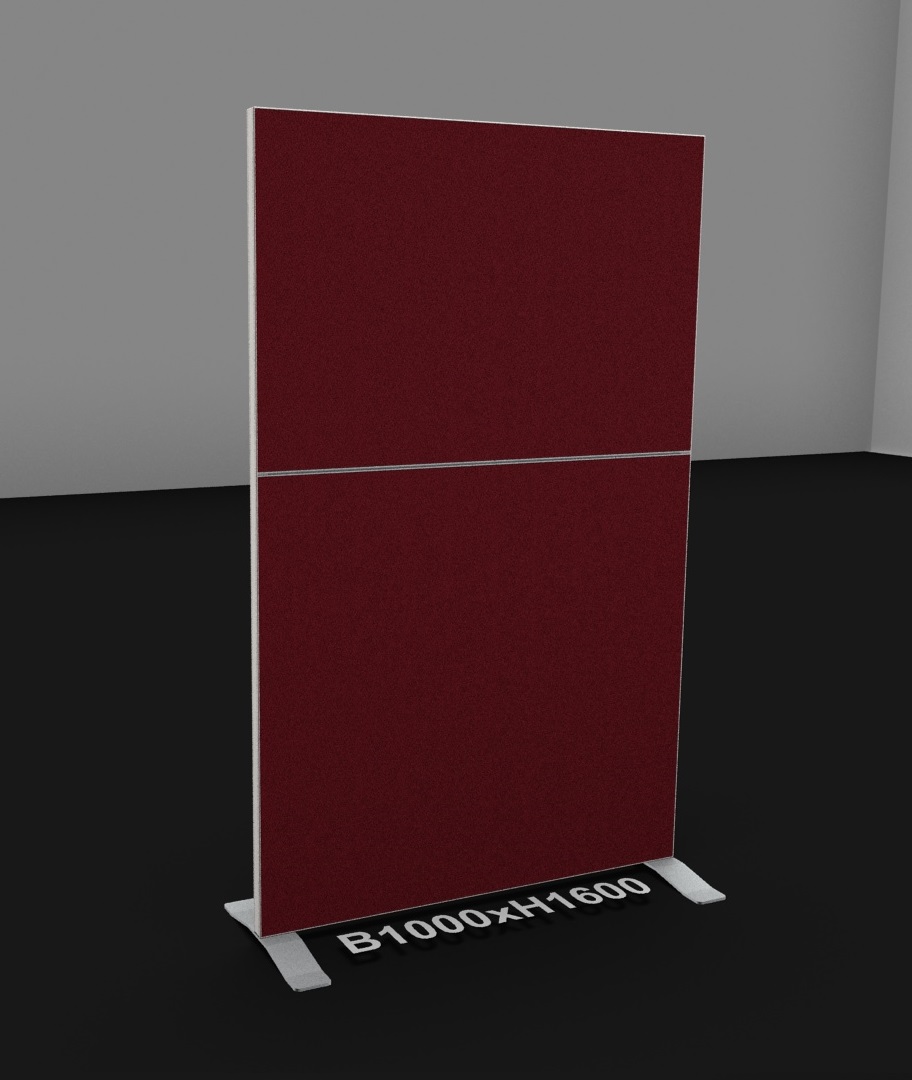 Die 35 mm dicke Stellwand besteht aus einem komplett umlaufenden pulverbeschichteten Aluminiumrahmen und ist farblich abgestimmt auf die PALMBERG - Tischprogramme. Optional stehen die Wandelemente mit integriertem, beidseitig nutzbarem Organisationsprofil zur Verfügung. Das Organisationsprofil ist ein kompaktes Aluminiumprofil wahlweise mit einer Einzel- bzw. Doppelnut. Bei der Doppelnut beträgt der Nutabstand 100 mm. Zwischen den Nuten befindet sich eine magnetische Abdeckblende – stoffbespannt. Eine zusätzlich wählbare Vertikalnut ermöglicht die direkte Verbindung zu Tischplatte oder Gestell. Höhenausgleichsschrauben gewähren eine optimale Justierung der Stellwand. Als Fuß-Varianten kommen unterschiedliche Ausleger zum Einsatz.