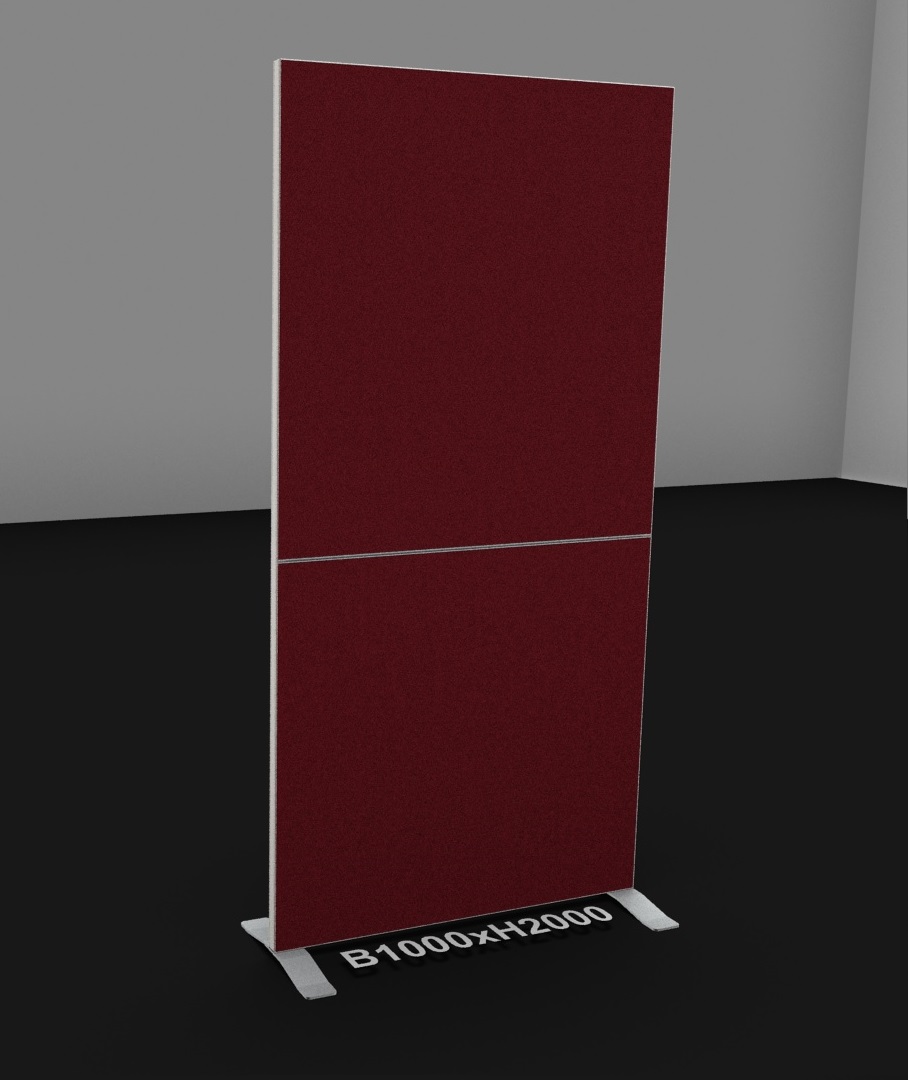 Die 35 mm dicke Stellwand besteht aus einem komplett umlaufenden pulverbeschichteten Aluminiumrahmen und ist farblich abgestimmt auf die PALMBERG - Tischprogramme. Optional stehen die Wandelemente mit integriertem, beidseitig nutzbarem Organisationsprofil zur Verfügung. Das Organisationsprofil ist ein kompaktes Aluminiumprofil wahlweise mit einer Einzel- bzw. Doppelnut. Bei der Doppelnut beträgt der Nutabstand 100 mm. Zwischen den Nuten befindet sich eine magnetische Abdeckblende – stoffbespannt. Eine zusätzlich wählbare Vertikalnut ermöglicht die direkte Verbindung zu Tischplatte oder Gestell. Höhenausgleichsschrauben gewähren eine optimale Justierung der Stellwand. Als Fuß-Varianten kommen unterschiedliche Ausleger zum Einsatz.