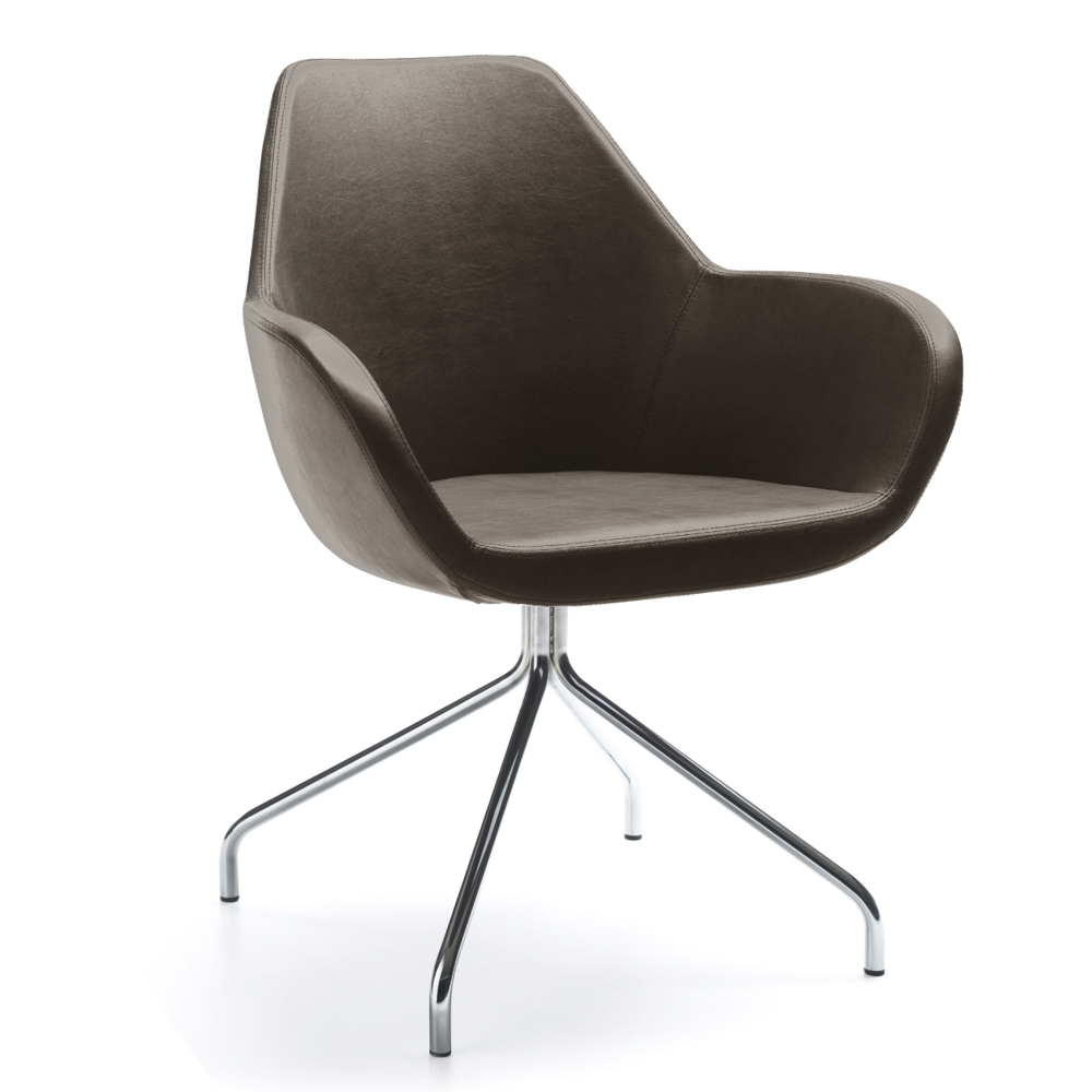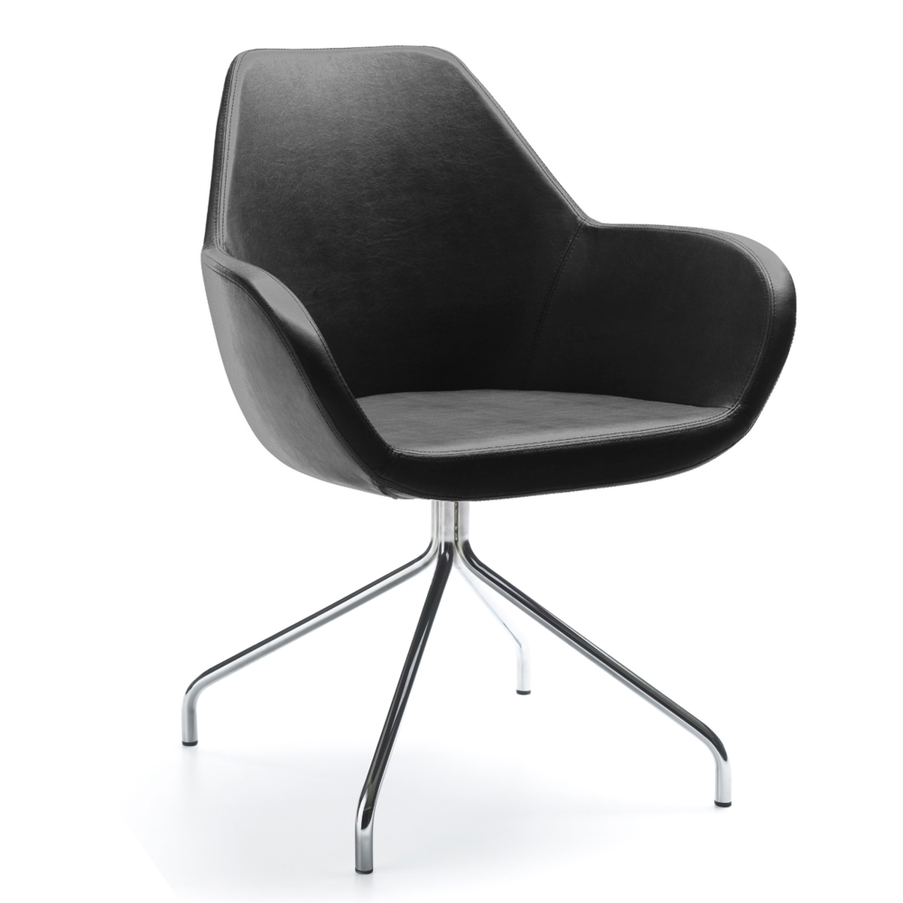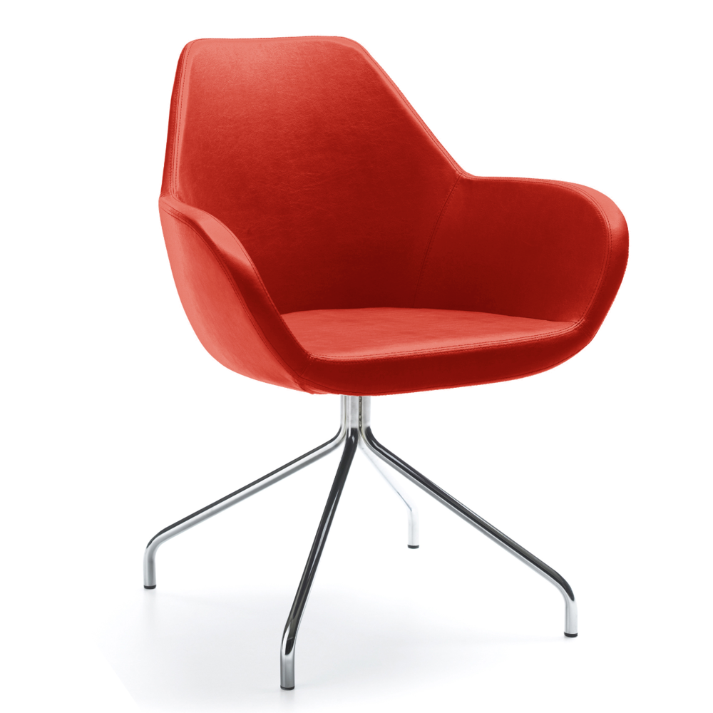 Die Fan-Sessel sind ein ausdrucksvoller Akzent in Büroräumen, verleihen ihnen aber zugleich Leichtigkeit. Die offene Form der Sitzschale ermuntert zu Gesprächen und zum kreativen Ideenaustausch.