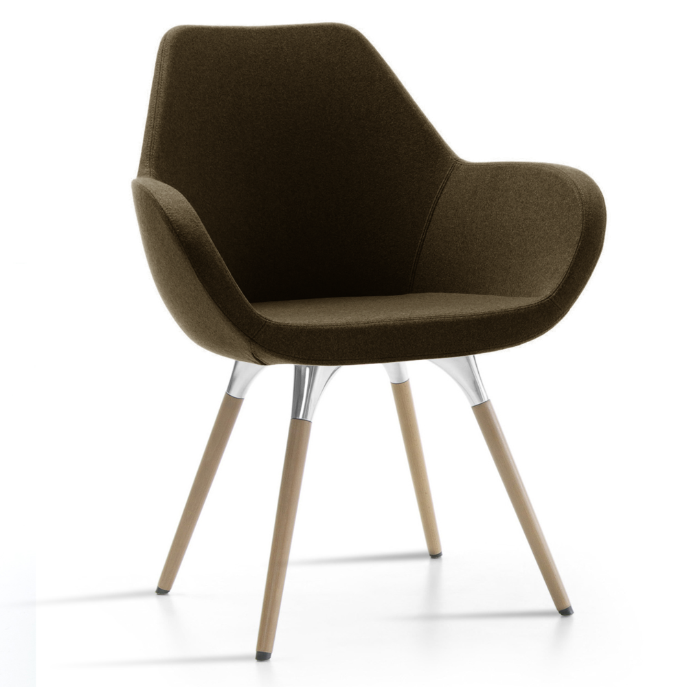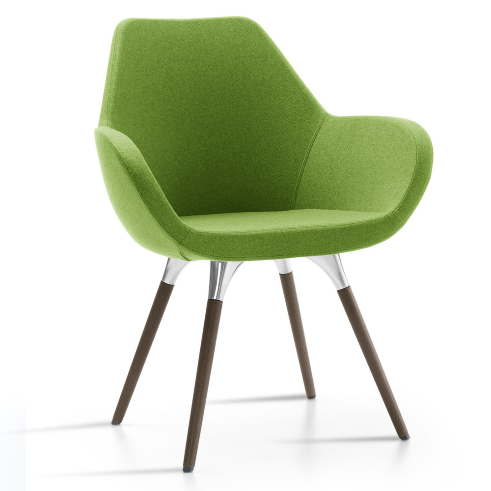 Die Fan-Sessel sind ein ausdrucksvoller Akzent in Büroräumen, verleihen ihnen aber zugleich Leichtigkeit. Die offene Form der Sitzschale ermuntert zu Gesprächen und zum kreativen Ideenaustausch.